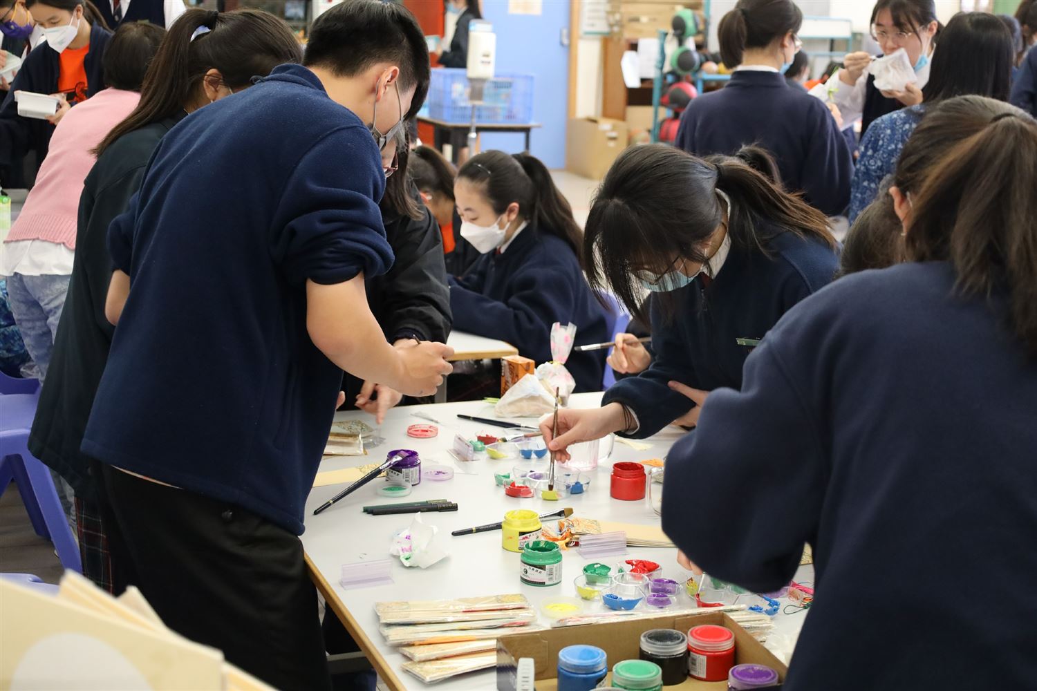中文科及中史科於二月十四日合辦了中華文化體驗日,內容非常豐富,有由本校同學親自教導的彩虹書法書籤製作,還有草蜢編織、中國剪紙、麵粉公仔及陀螺等活動,更有家長教師會派發民間小食,氣氛熱鬧。同學十分投入活動,能體會到中華文化傳統手工藝的樂趣。