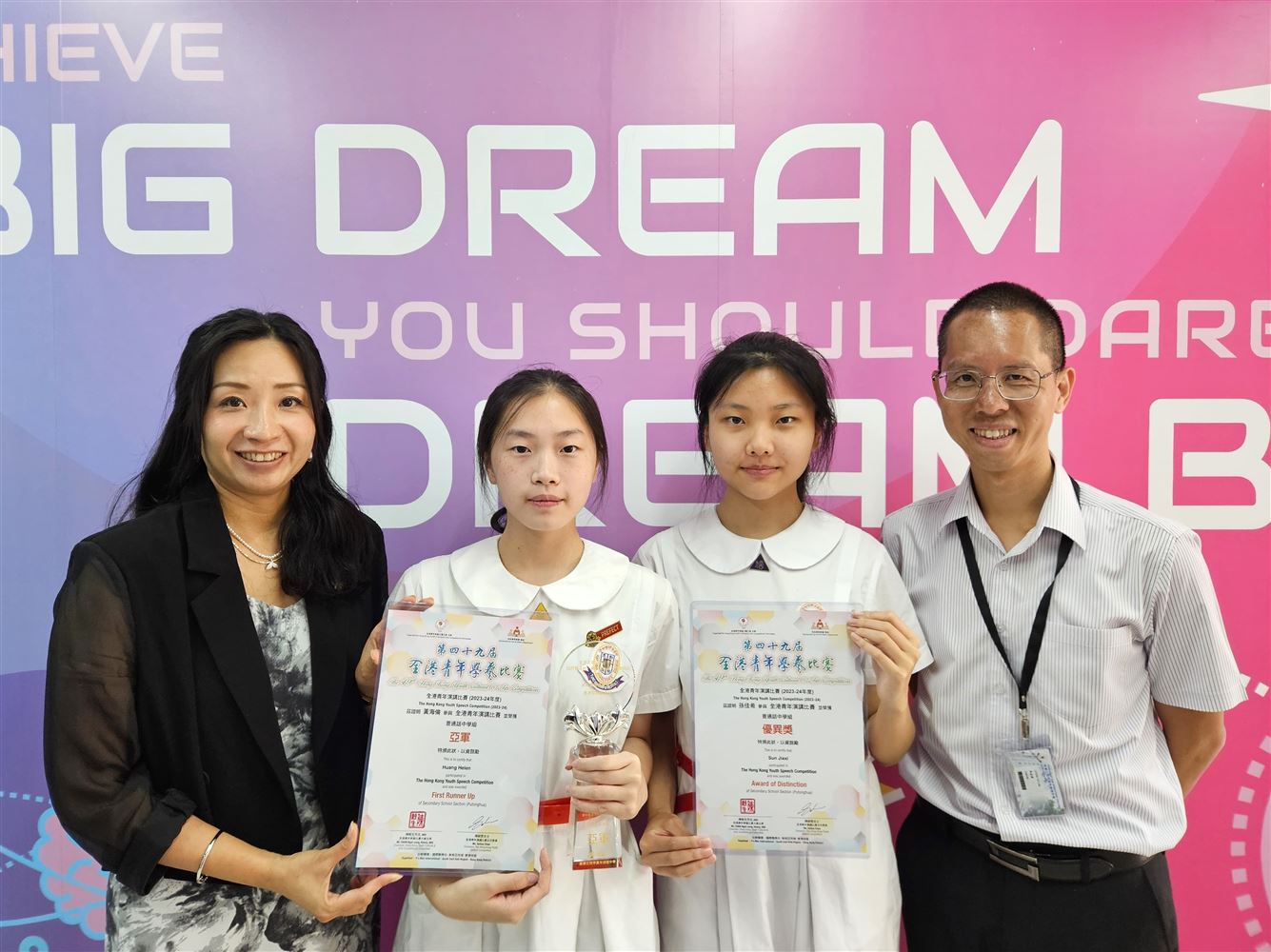 由全港青年學藝比賽大會及國際聯青社(東南亞地域香港地區)合辦的「全港青年演講比賽(2023-24)」已於日前公佈賽果,本校高中同學在是次比賽中表現出色,在眾多參賽者中脫穎而出,恭喜黃海倫同學及孫佳希同學分別獲得普通話中學組亞軍及優異獎!