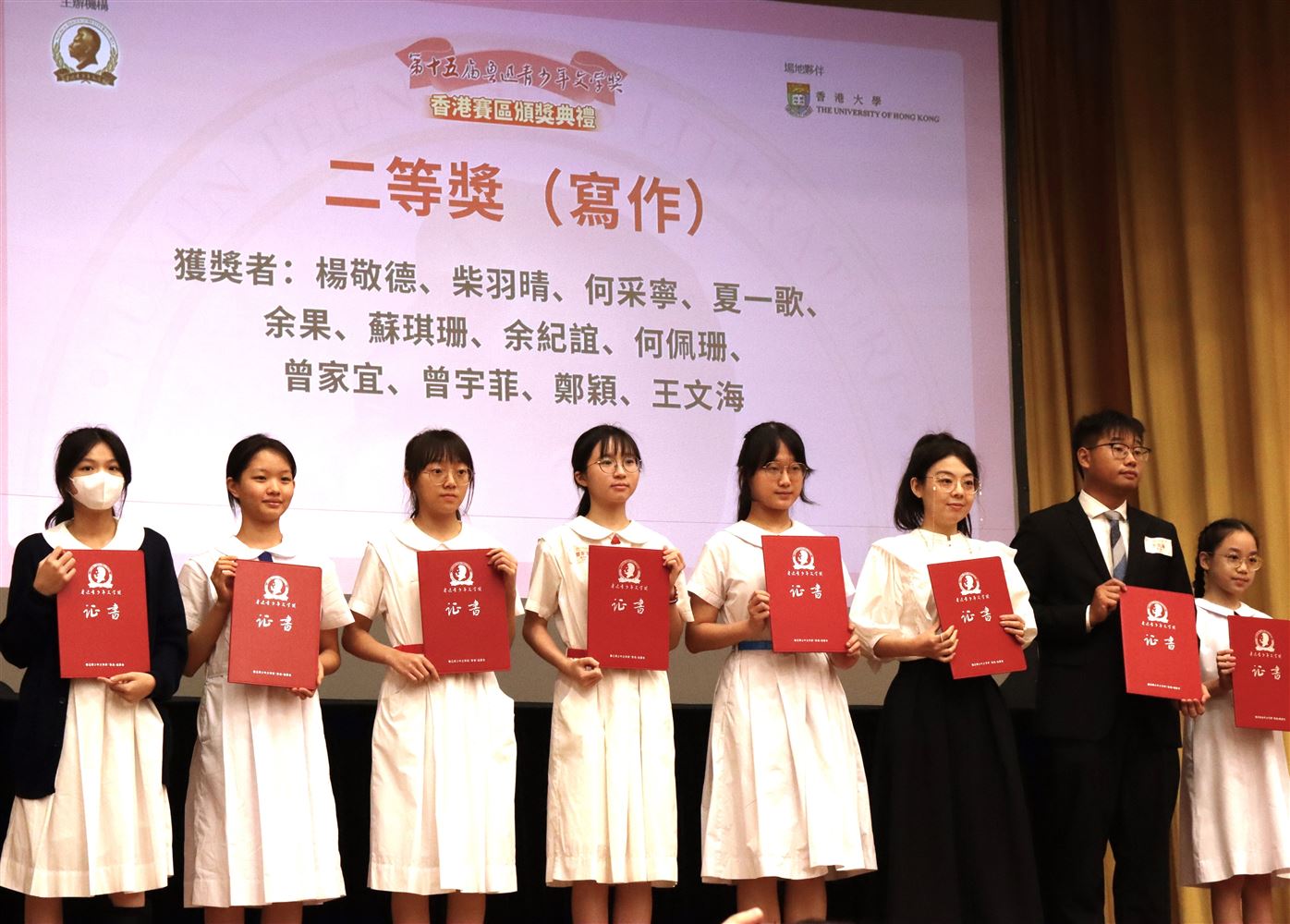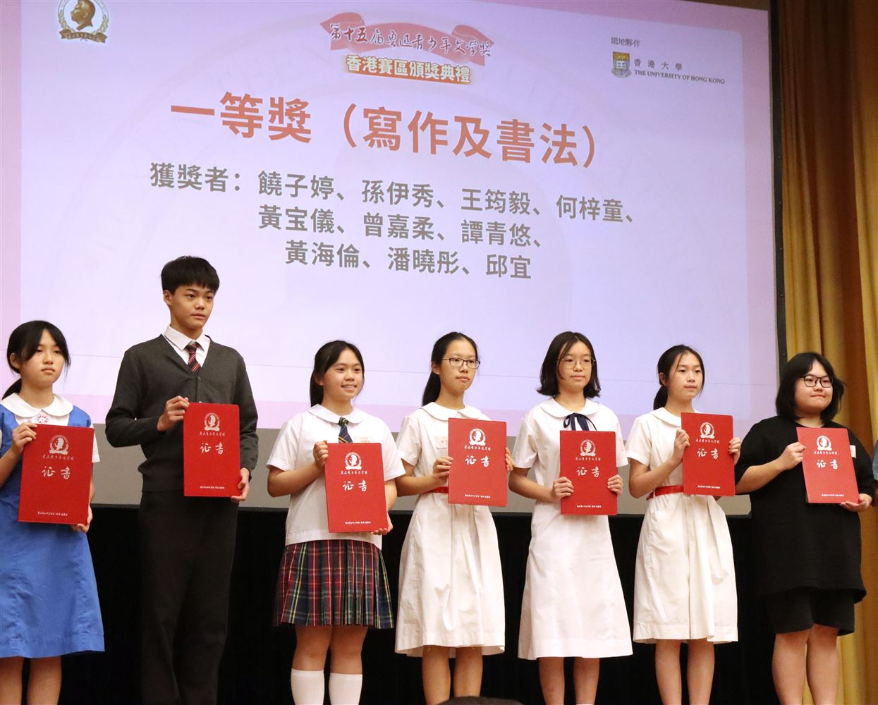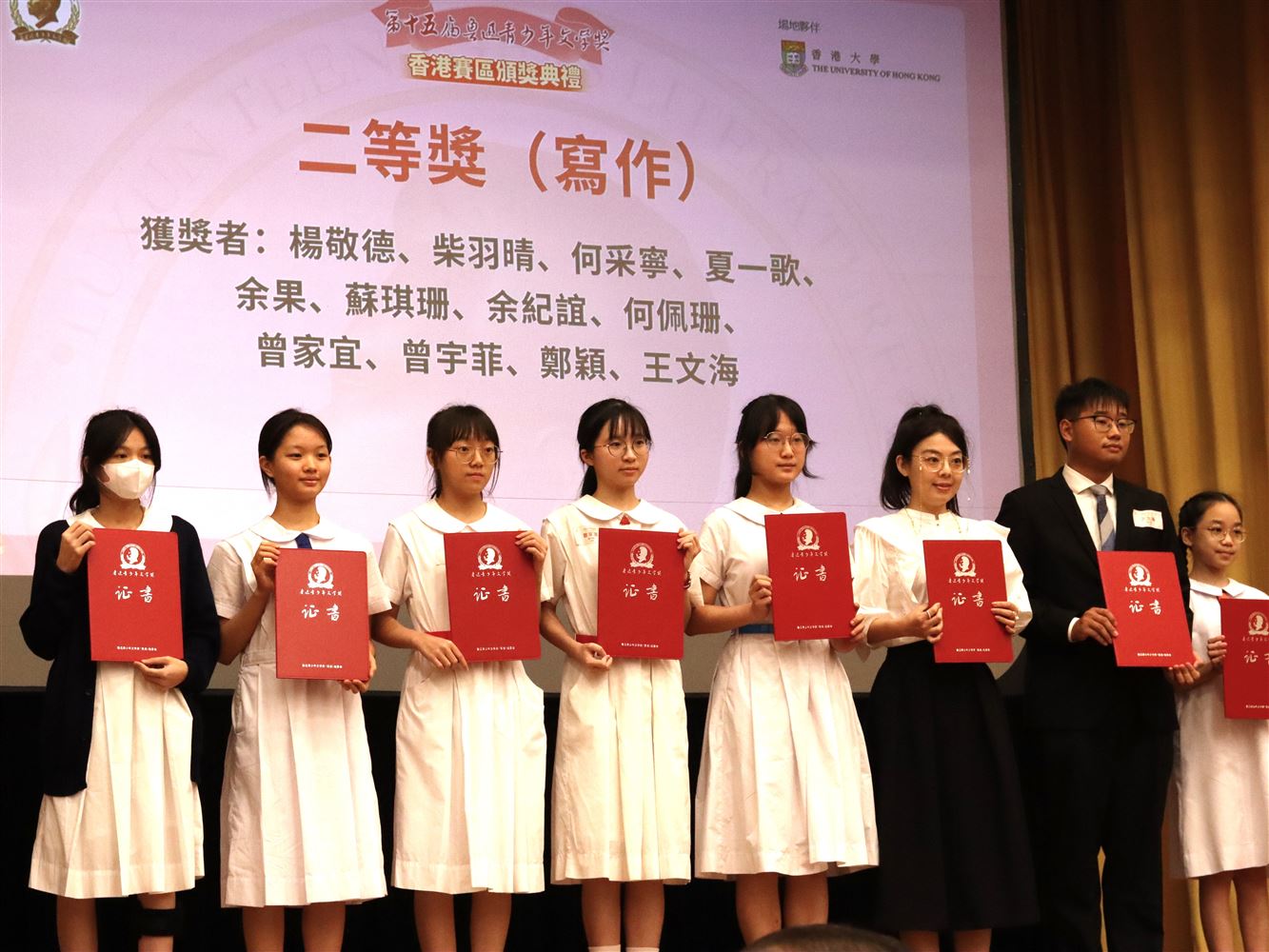 恭喜所有得獎同學!香港賽區頒獎典禮已於十月十九日假香港大學陸佑堂進行,期待同學們繼續努力,不斷探索文學創作,鑽研書法藝術,以弘揚我國優良的華夏文化。