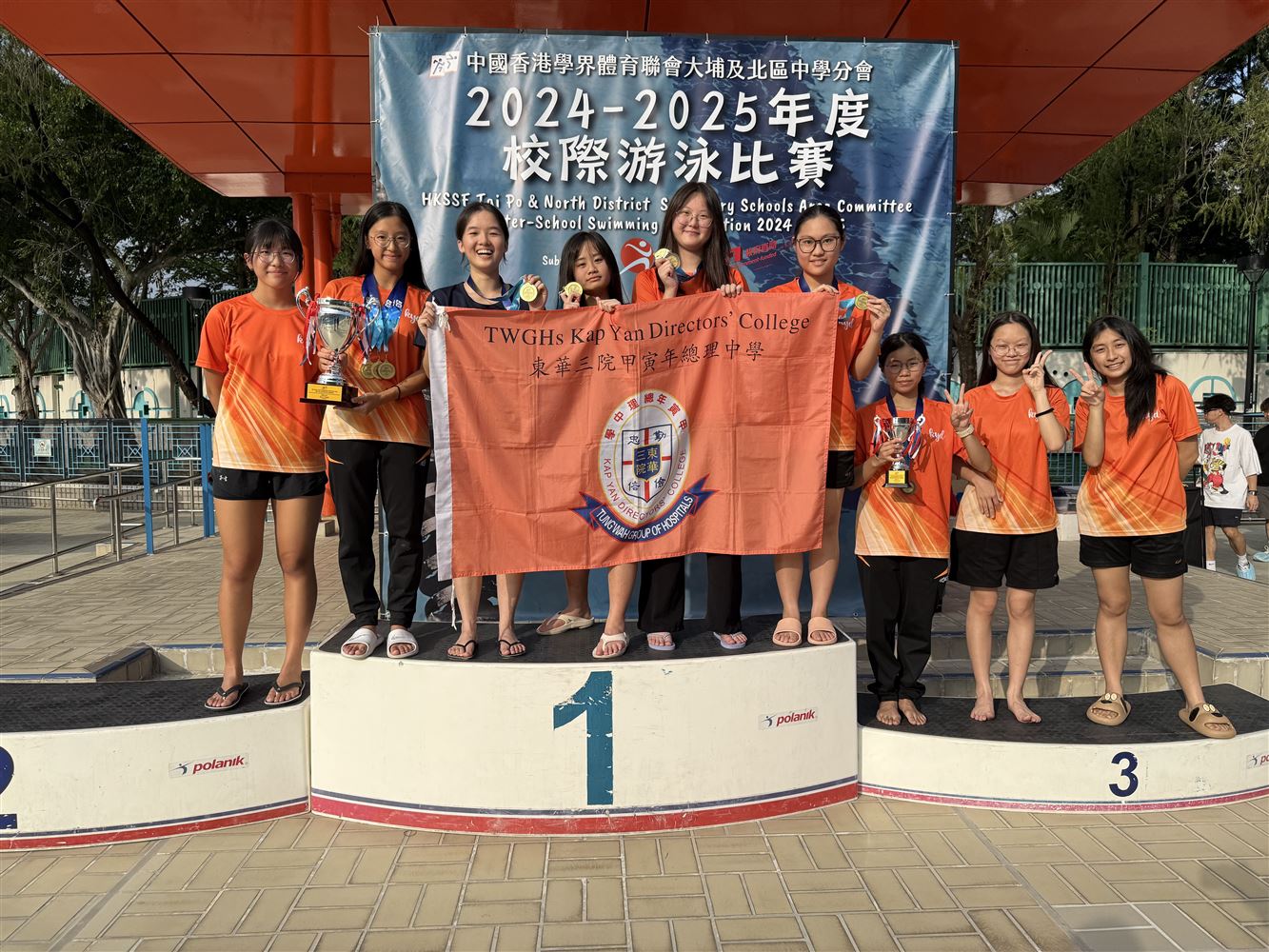 Our school had joined the Schools Sports Federation of Hong Kong, China, Tai Po and North District Secondary Schools Area Committee Inter-school Swimming Championships on 16 and 21 October 2024. The competition was held at Ma On Shan Public Swimming Pool. All swimmers competed with their will power and whole effort and got remarkable results. The overall results were as follows: