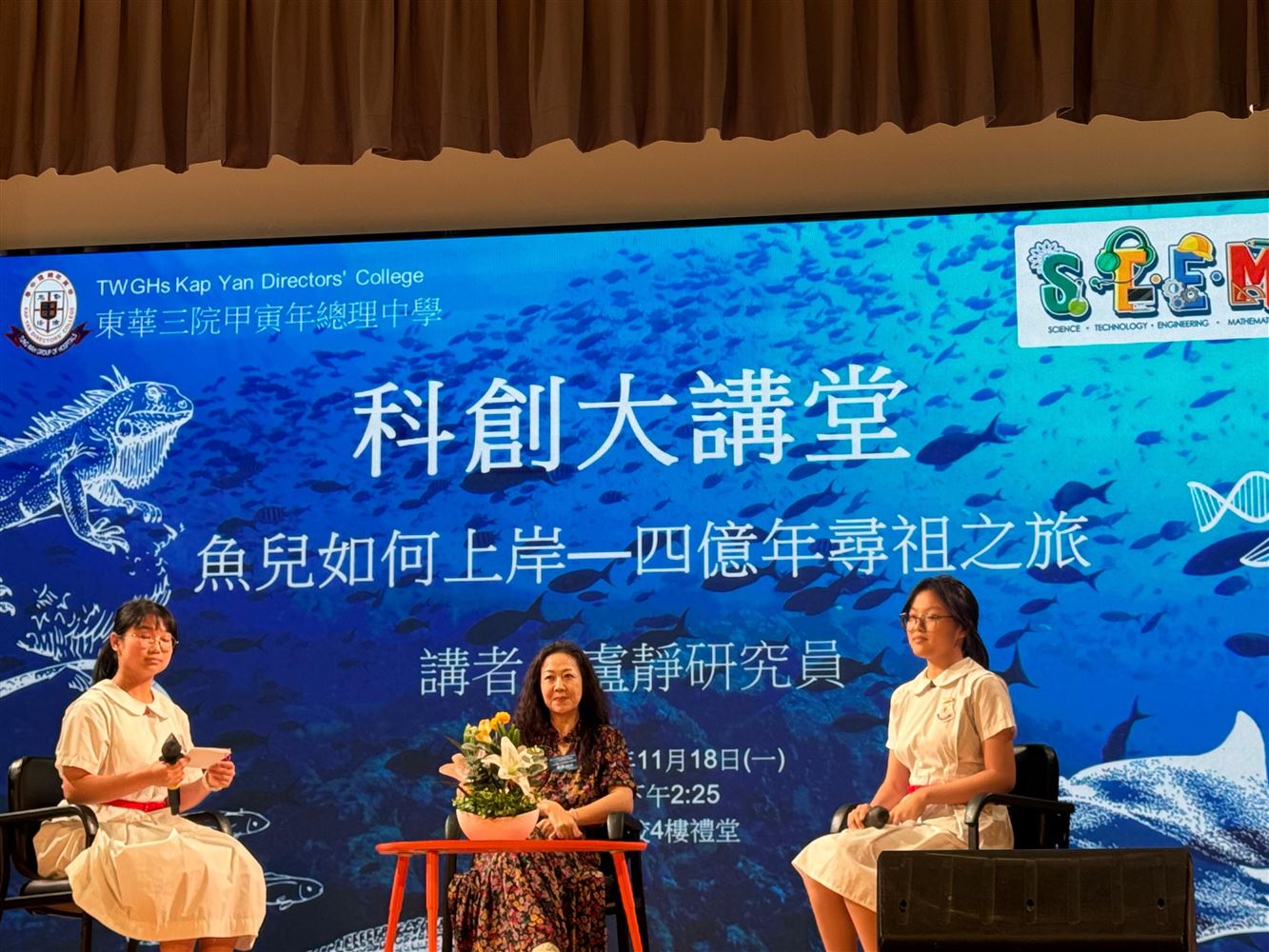 同時,我也希望同學可以多探索自己感興趣的範疇,請勿只局限於書本當中,可以多走出去,體驗一下不同的事物,這才會找到自己真正感興趣的事物,找到興趣是人生中非常重要的事情!以我自身為例,找到自己人生當中的興趣,並將之變為職業,研究是一項非常有意義的工作,我每一天也樂於研究生命的演化!而我今日也很高興能見到許多同學對生物學感興趣,希望將來有機會能再和同學繼續交流!