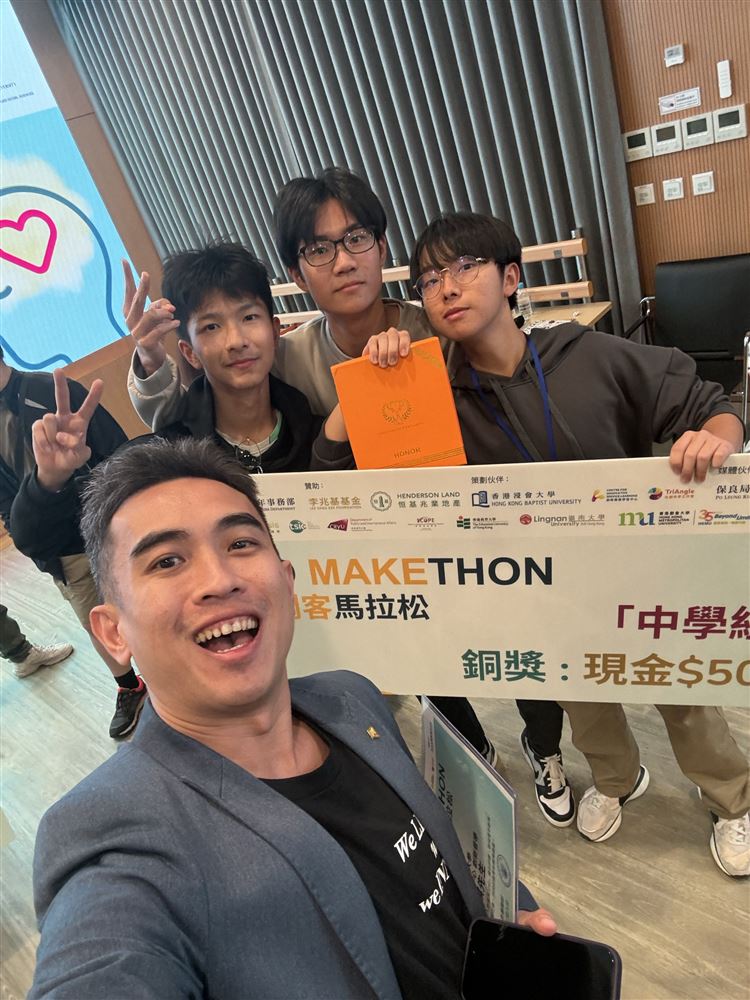 Some seven F.4 Kap Yan students joined an event named "Inno Makethon" organised by Po Leung Kuk. The event consisted of a range of activities unleashing students' creativity as well as raising awareness towards mental health among adolescents. Having acquired skills in public speaking, our students further gave presentations with aid in AI. 4B Wong Yik Hin, 4D Ng Ling Chun and 4E Lu Lingfeng have won the bronze award as well as $500 cash coupon. Congratulations to the prize winners.