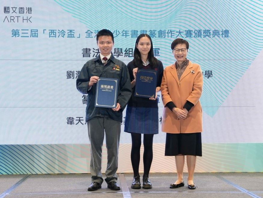 由西泠印社及集古齋主辦,西泠學堂承辦的第三屆「西泠盃」全港青少年書畫篆創作大賽已於日前公佈賽果,恭喜6E劉潤楷同學憑書法作品〈錄唐王維詩十一首〉,在眾多參賽者中脫穎而出,榮獲書法中學組亞軍🏆!本屆大賽以「同根連心,喜迎國慶」為主題,鼓勵全港中小學學生發揮創意,徵集優秀書法、繪畫、篆刻藝術作品。是次活動頒獎禮已於十二月二十二日假香港會議展覽中心舉行,由前香港特別行政區行政長官林鄭月娥女士任頒獎嘉賓。期待同學能藉書法創作活動,展現深厚的文化底蘊與新時代中國的創新活力。