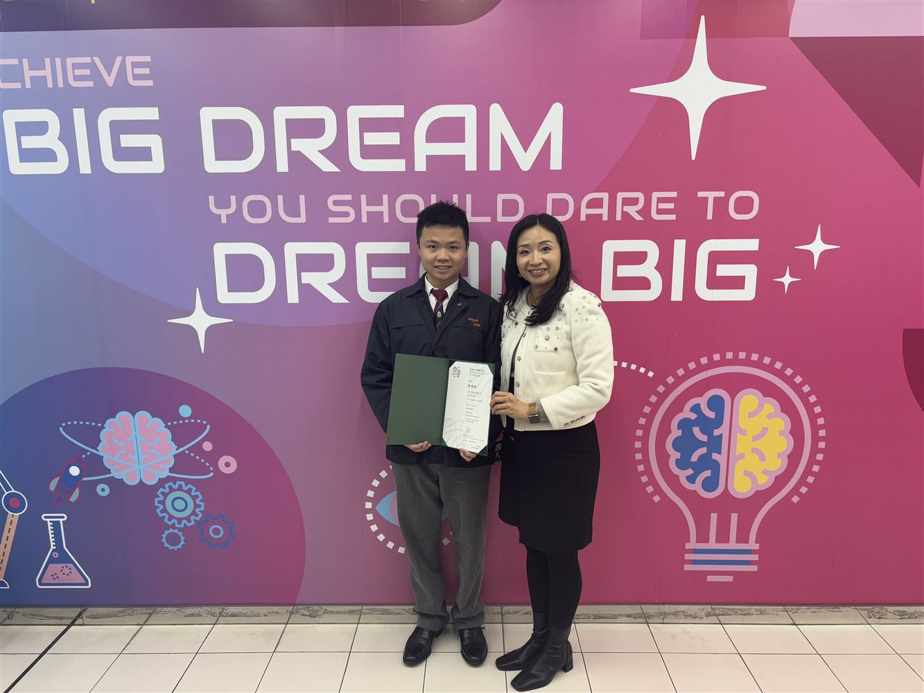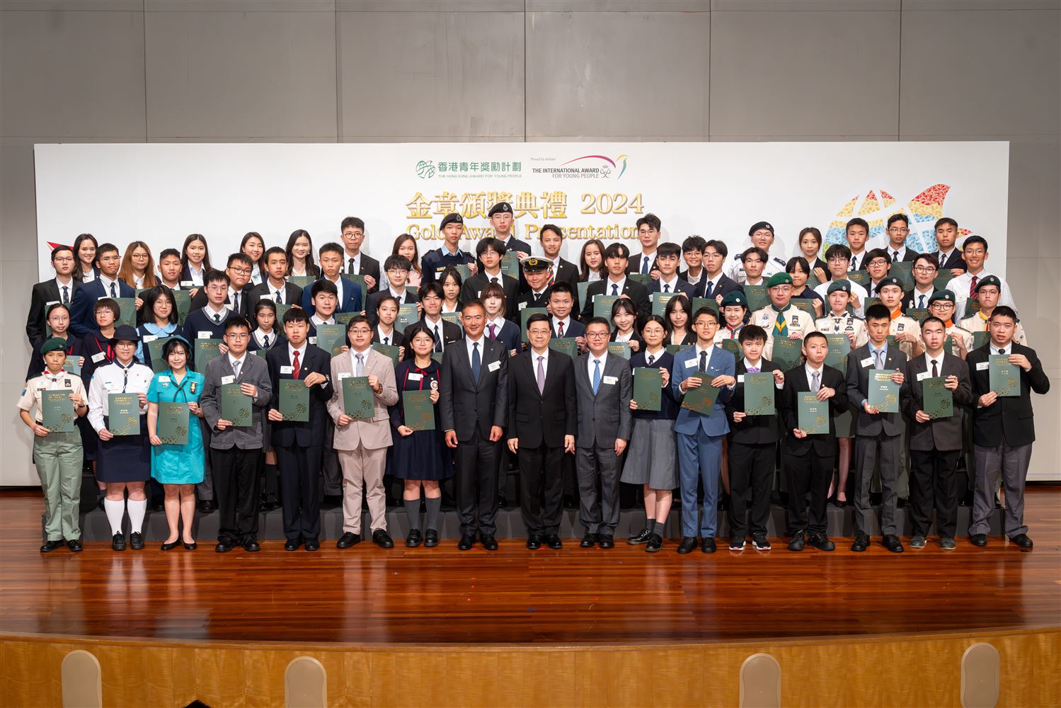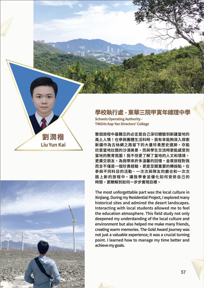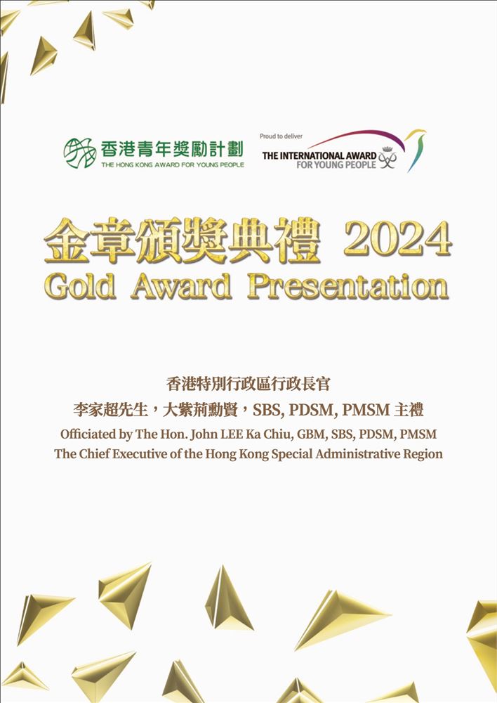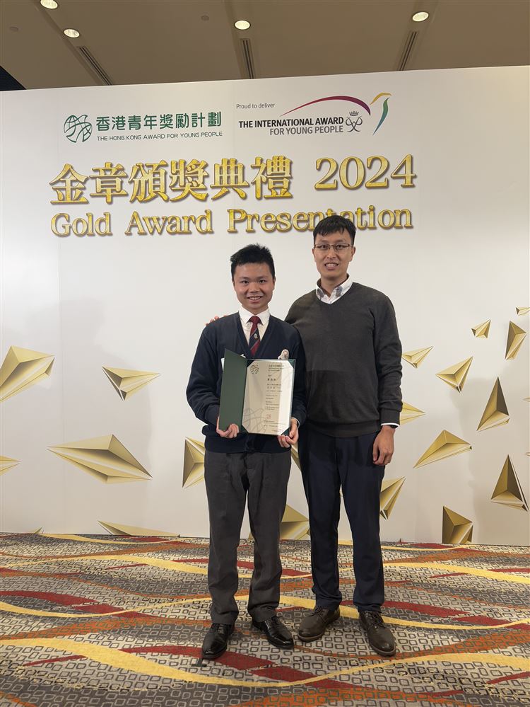 The Hong Kong Youth Award Scheme Gold Medal Award Ceremony 2024 was successfully held on December 9 at the Hong Kong Convention and Exhibition Centre. Liu Yun Kai from class 6E received the gold medal from the Chief Executive of the Hong Kong Special Administrative Region, Mr. John Lee, who presented the award in recognition of his achievement.